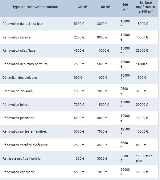 Le renouvellement d’une résidence ou d’une maison avec tous travaux liée inclus, coute à peu près 200 à 1500 €. Le renouvellement d’une se faire en plusieurs catégories différentes, et son tarif est fixer compte tenue de la superficie totale qu’il couvre. Ce prix dépend de l’ampleur des travaux entrepris.