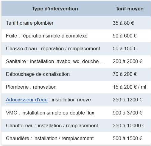 Le tarif d’un plombier