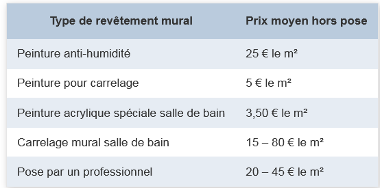 Refaire les murs de la salle de bain est une opération qui revient également cher. Nous vous présentons ci-dessous les différentes possibilités pour rafraîchir vos murs et vous fournissons également le tarif moyen de ces travaux.