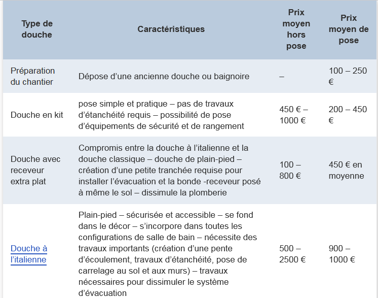 - 1 à 3 jours pour la dépose et la pose d’une douche ou baignoire