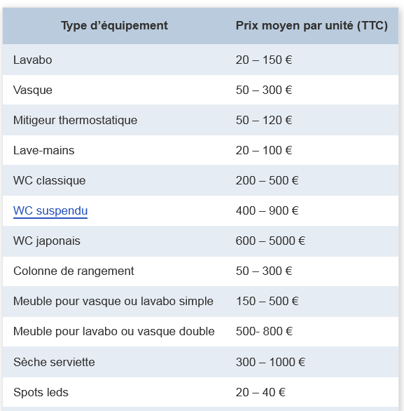 - L’état de la salle de bain : une salle de bain en mauvais état aura un coût plus élevé qu’une salle de bain en bon état