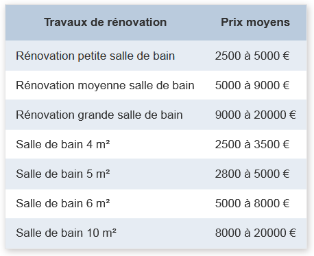 Le prix dépend de l'importance des travaux, de la superficie de votre pièce d'eau. Il peut aussi varier en fonction de l'état de la salle de bain et de la qualité des matériaux choisis. Le cout d’une rénovation de salle de bain fluctue entre 2 500 et 15 000 €.