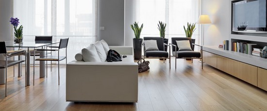 Le sol stratifié donne un vrai cachet aux sols : idéal pour le salon, la chambre, le bureau, la cuisine ou la salle à manger. Cependant, il est très sensible à la lumière du soleil, à l’eau, et se raye facilement. C’est pourquoi, il est essentiel de le protéger